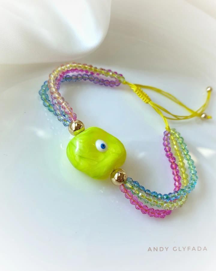 Βραχιόλι Μάτι με Σμάλτο και Χάντρα σε Μακραμέ Κορδόνι